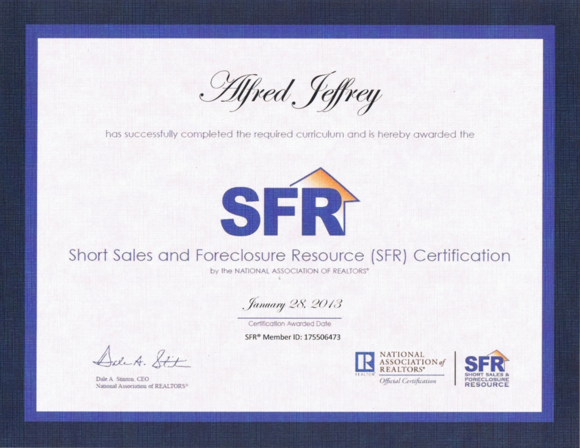 Short Sales & Foreclosures Certificate